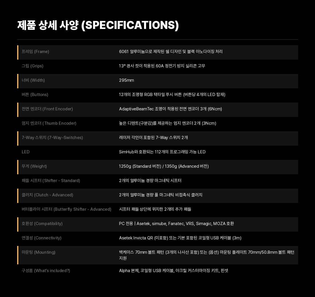 표준 : 시프터 1개 / 어드밴스트 : 버터플라이 시프터 및 듀얼 클러치